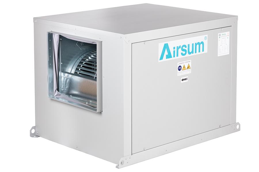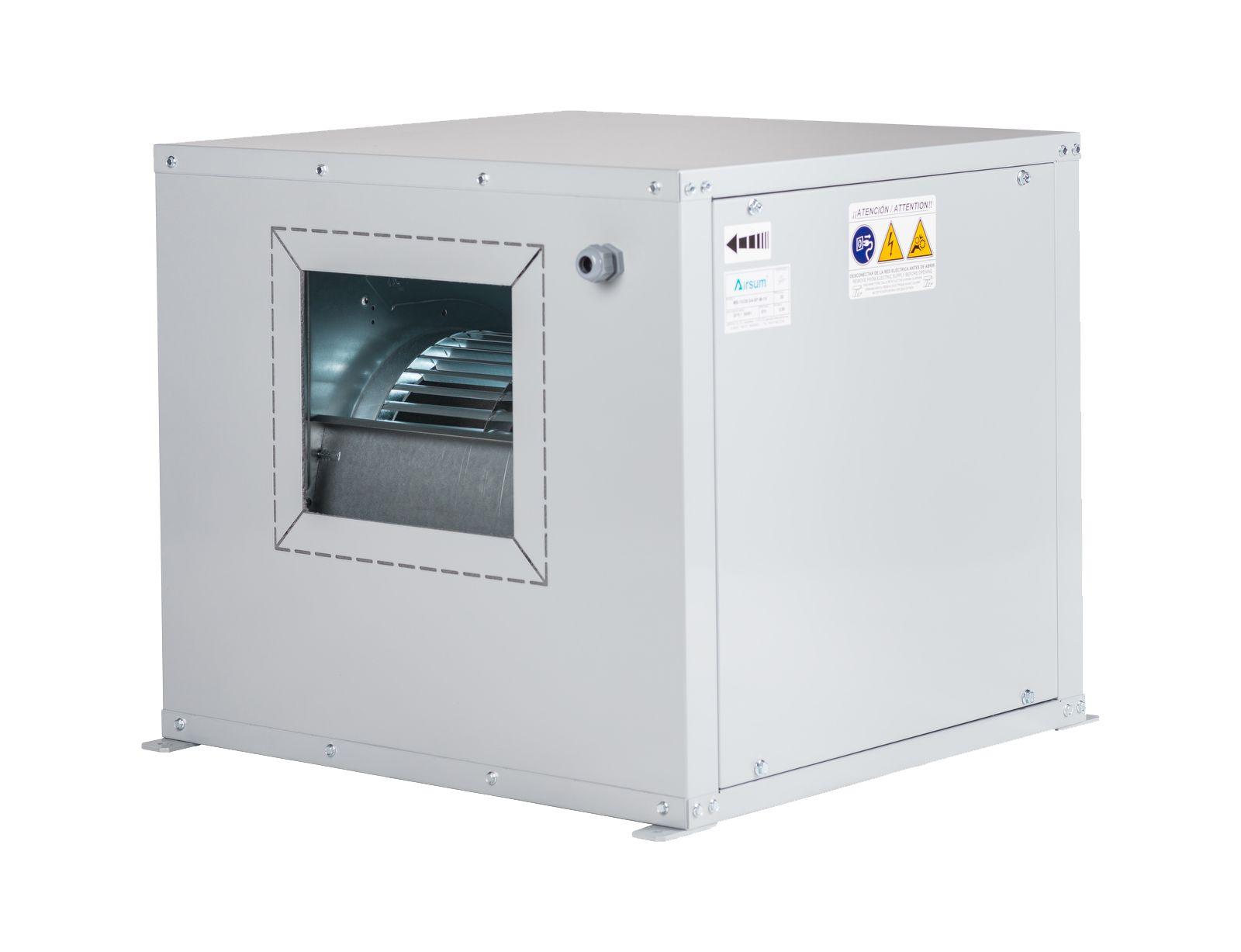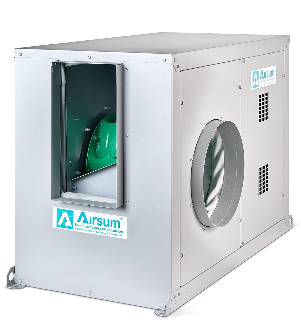They incorporate a double inlet centrifugal fan with an inserted blade impeller. The fan is driven by a belt and pulley transmission by a motor located inside the box.